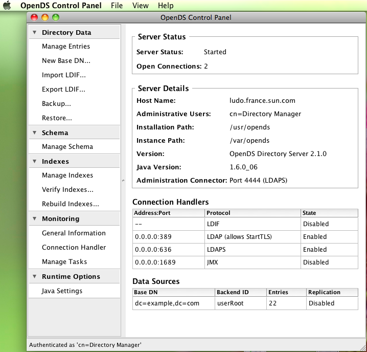 Up until now, to manage an OpenDS server, one would need to log onto the machine and starts the Control Panel.